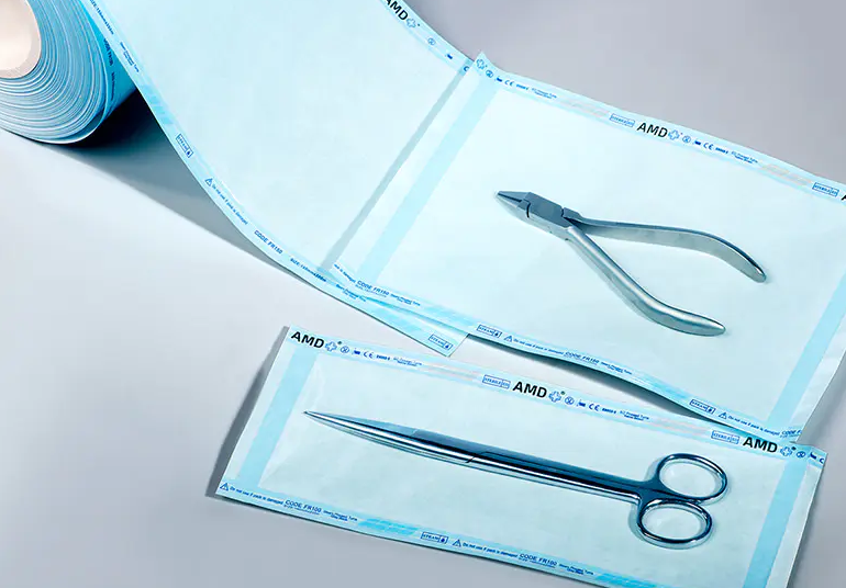 مواد: مواد متداول شامل کاغذ کرافت درجه پزشکی، Tyvek® و لایههای لایههای پلاستیکی است.